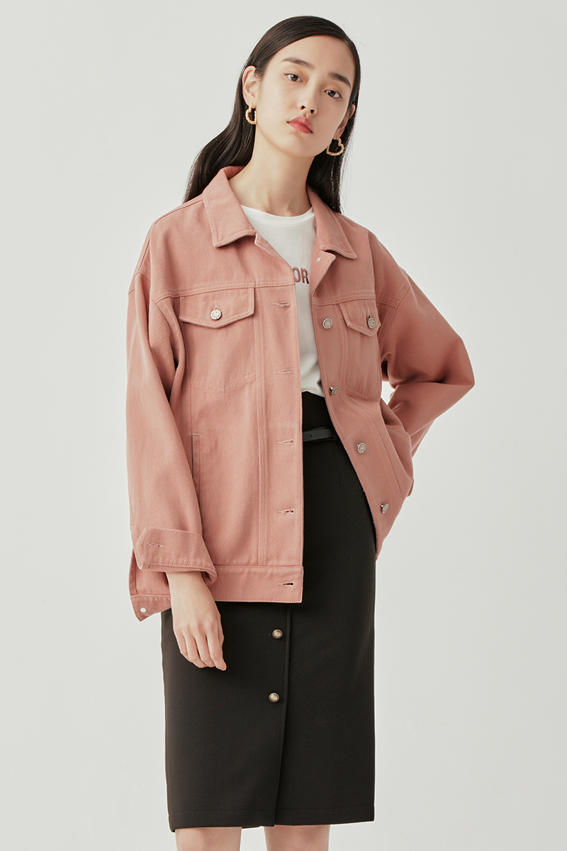 元气牛仔外套利用粉色打造减龄效果,英气与潇洒并行的Oversized经典廓形,搭配线条流畅的黑色铅笔半裙,既有能够自由舒展的元气满满,也不会缺少「松而不散」的轻熟气质。