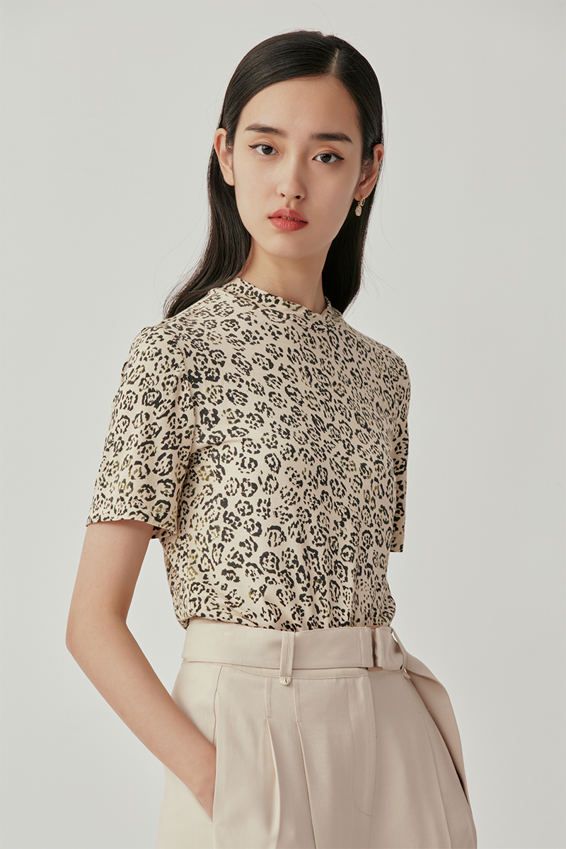 仿佛投身一场华丽的城市冒险,时尚界占据醒目位置的豹纹元素,用垂坠感良好的雪纺轻盈呈现,藏匿于不规则剪裁中的灵动俏皮,在甜酷粉的渲染下绽放摩登风范。