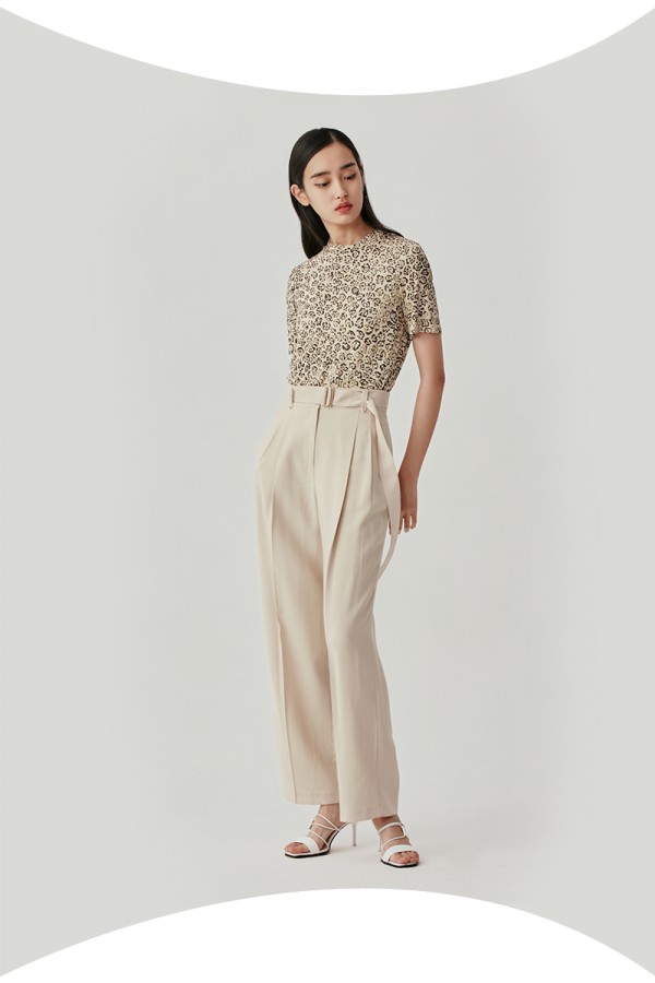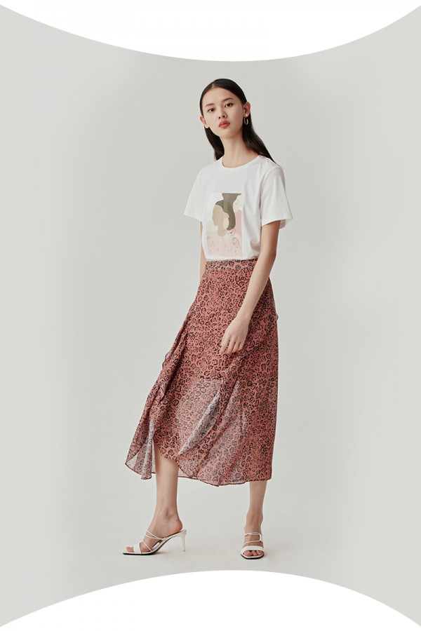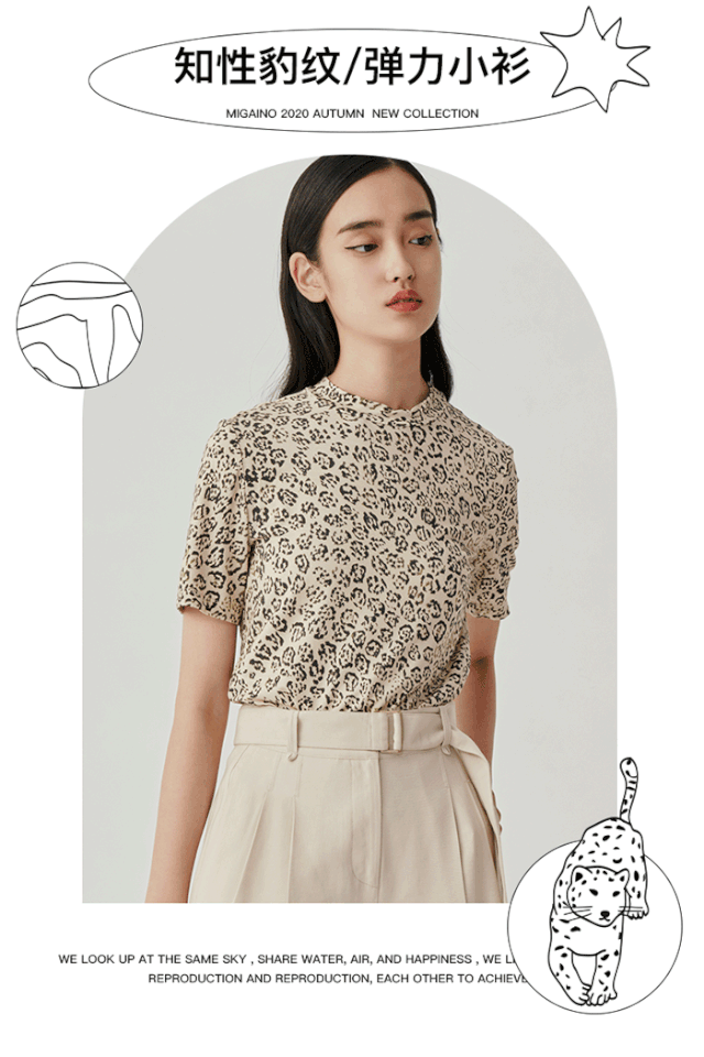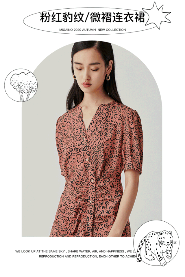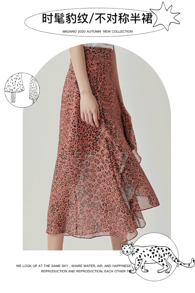 仿佛投身一场华丽的城市冒险,时尚界占据醒目位置的豹纹元素,用垂坠感良好的雪纺轻盈呈现,藏匿于不规则剪裁中的灵动俏皮,在甜酷粉的渲染下绽放摩登风范。
