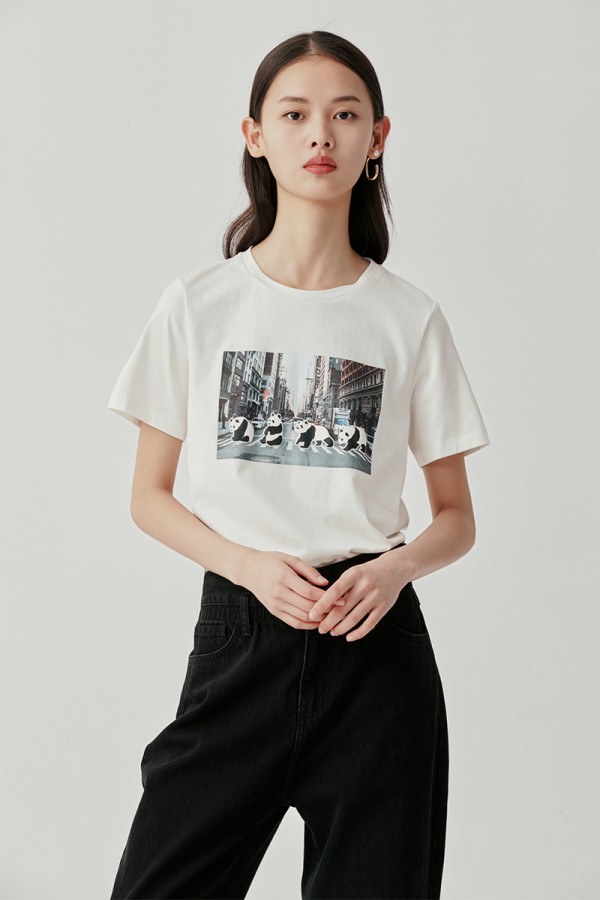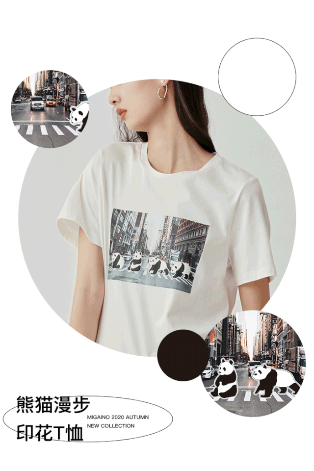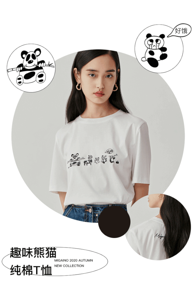 柔软温和的环保棉纱线,经过一系列漫长的自然之旅,编织成T恤的百搭造型;漫步热闹街头的熊猫印花,是蔓延在繁华城市的自由宣言。