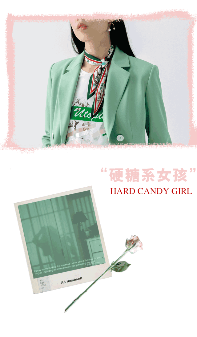 一如薄荷的清新,这身雅致的绿色西装套装既有着利落也透露着独属女性的柔和,内搭一件简约白T,无论是通勤上班,还是情人节的约会,你都能完美搞定。