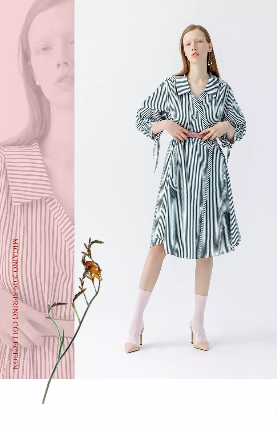 都市系女孩的***选择***是这款经典竖条纹衬衫裙,设计以简约大方为亮点,剪裁流畅精致,收腰的设计将女孩的纤纤细腰完美衬托,要显瘦就看它了~