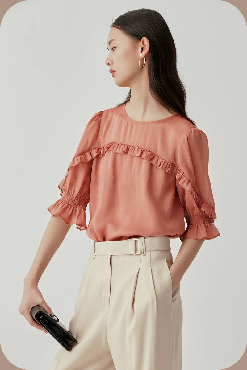 轻盈薄透的雪纺面料加持荷叶边设计