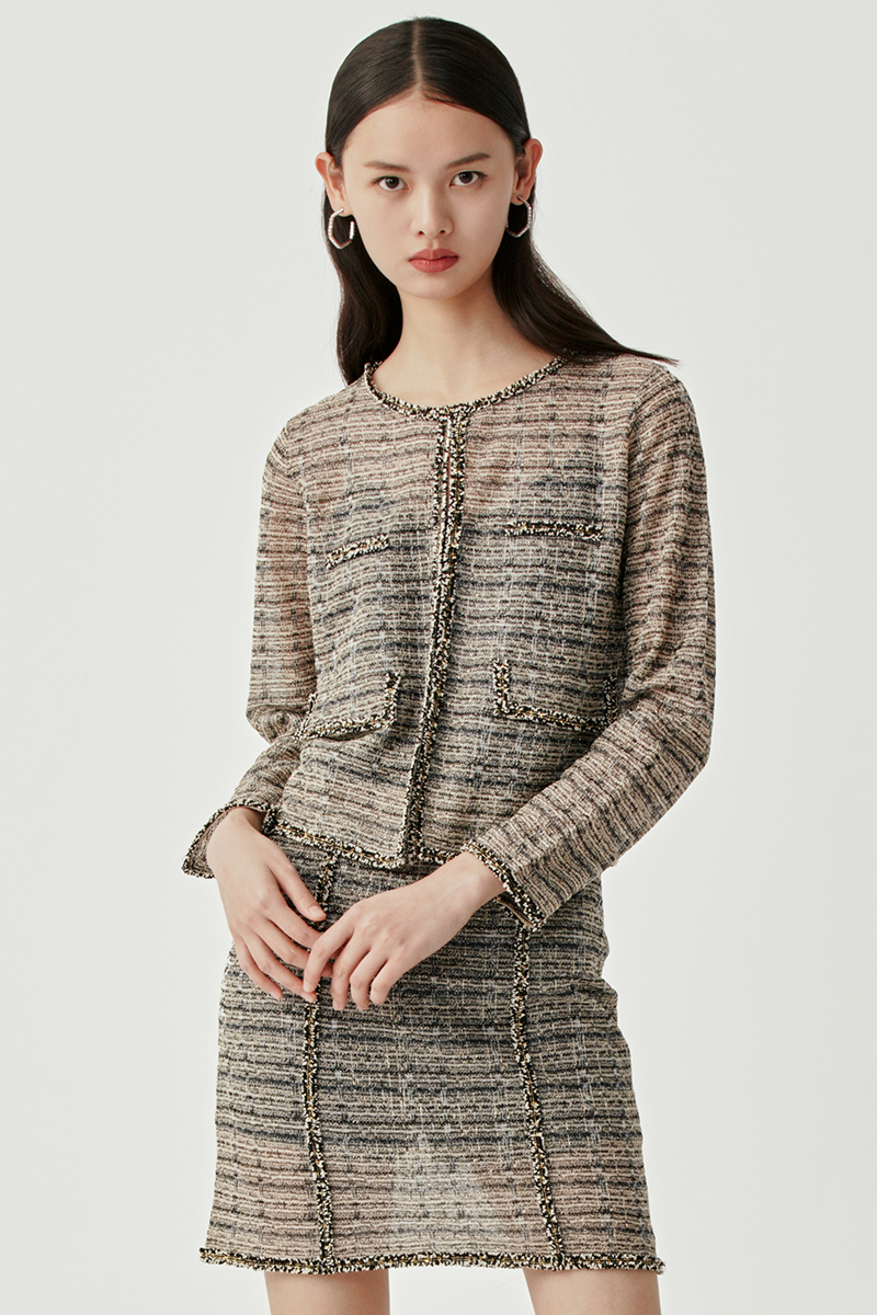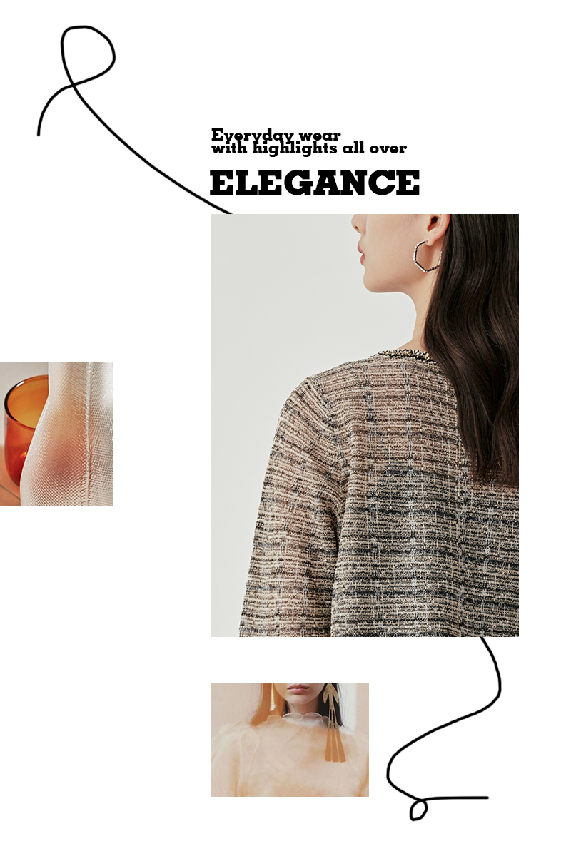 复刻法式优雅的小香风套装,在镶边格纹中交织成潮流的缩影。当它衍生更多避免俗套的欲望,叛逆上演超越经典的全新美学时尚,大胆透视营造朦胧缥缈的无限遐想,使之成为隆重社交场合的温柔着装利器。