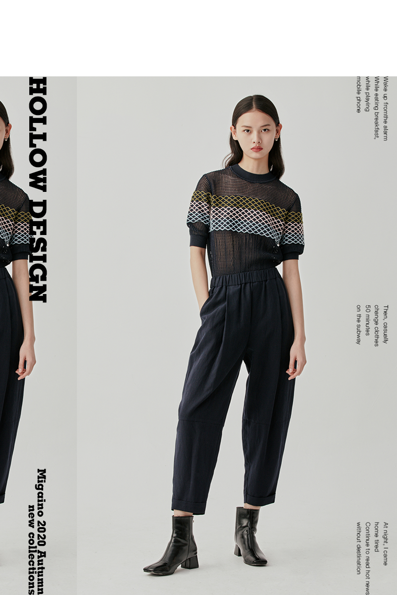 在裸露或隐藏中寻一份自在,镂空设计协同撞色菱形格,为普通日常注入个性着装风貌。棉麻长裤带着文人雅士追求的布衣精神,用东方质感碰撞时髦街头风,完美呈现繁简有度的时尚掌控力。