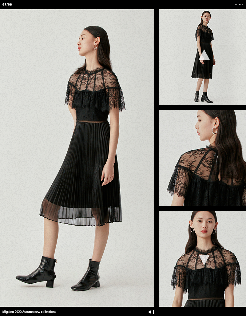 聚光灯下的Party Queen,把野心勃勃的好胜心交给小黑裙。冷艳魅力透过镂空蕾丝俘获关注,轻盈褶皱裙摆在柔美与妩媚的对弈里,将风情万种演绎得出神入化。