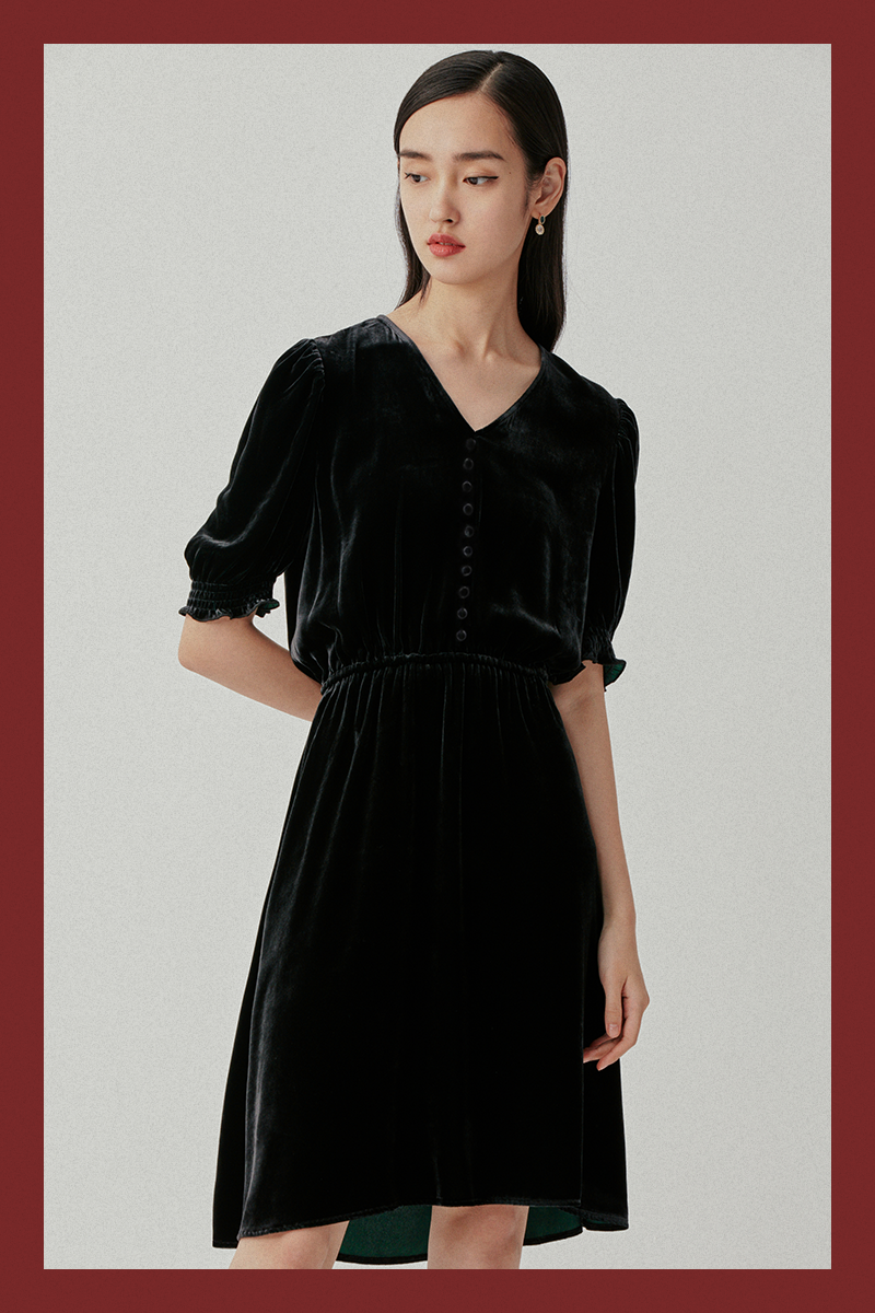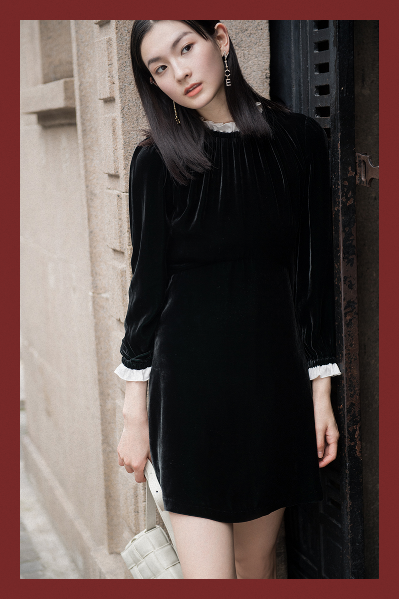 自带光泽感和垂坠感的真丝丝绒肌理起伏间释放与生俱来的贵族气质