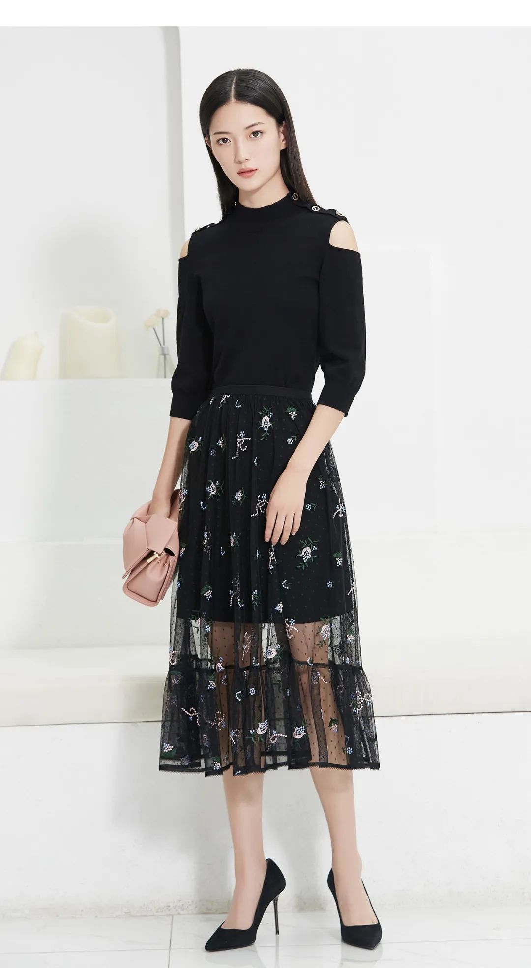 精致甜美的绣花 是丰沛我们生活的惊喜金属饰扣点缀细节 网纱依然朦胧烂漫