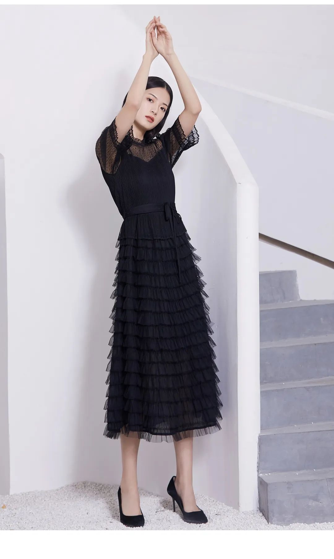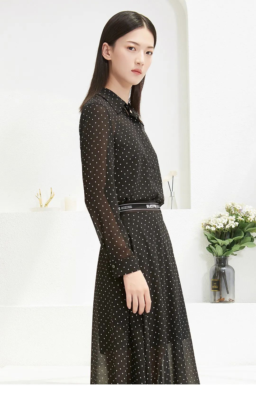 IN THE WIND 舞动规律的波点神秘无声的黑不规则的裙摆在风中舞动 轻透高级