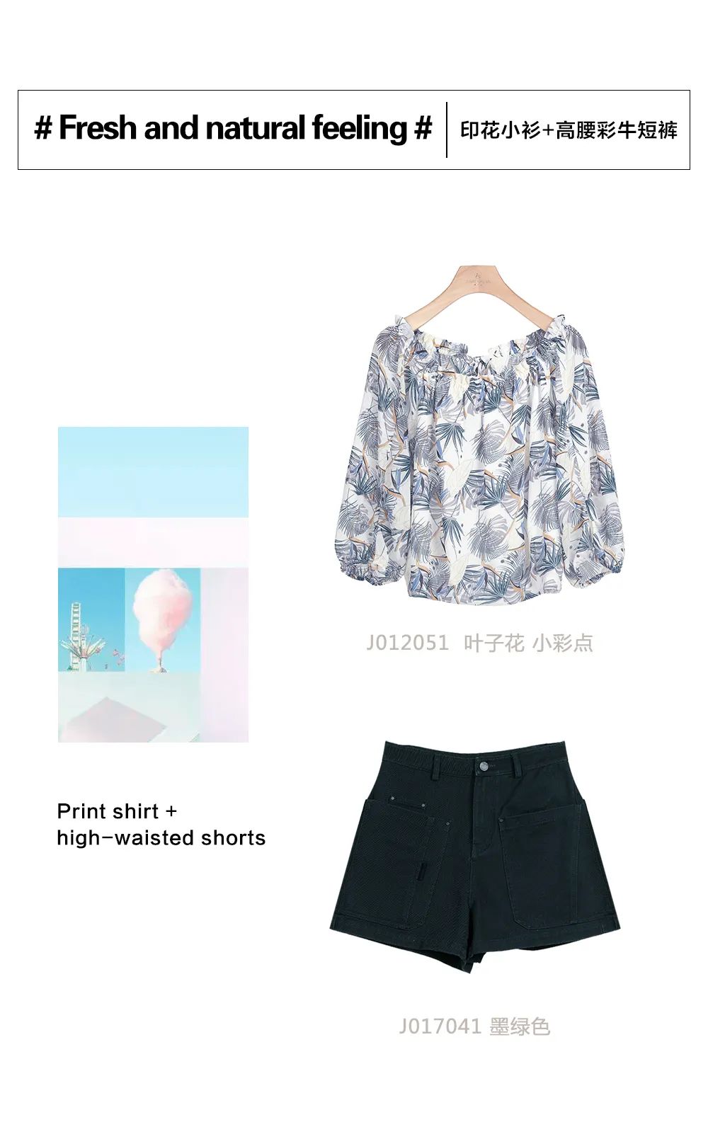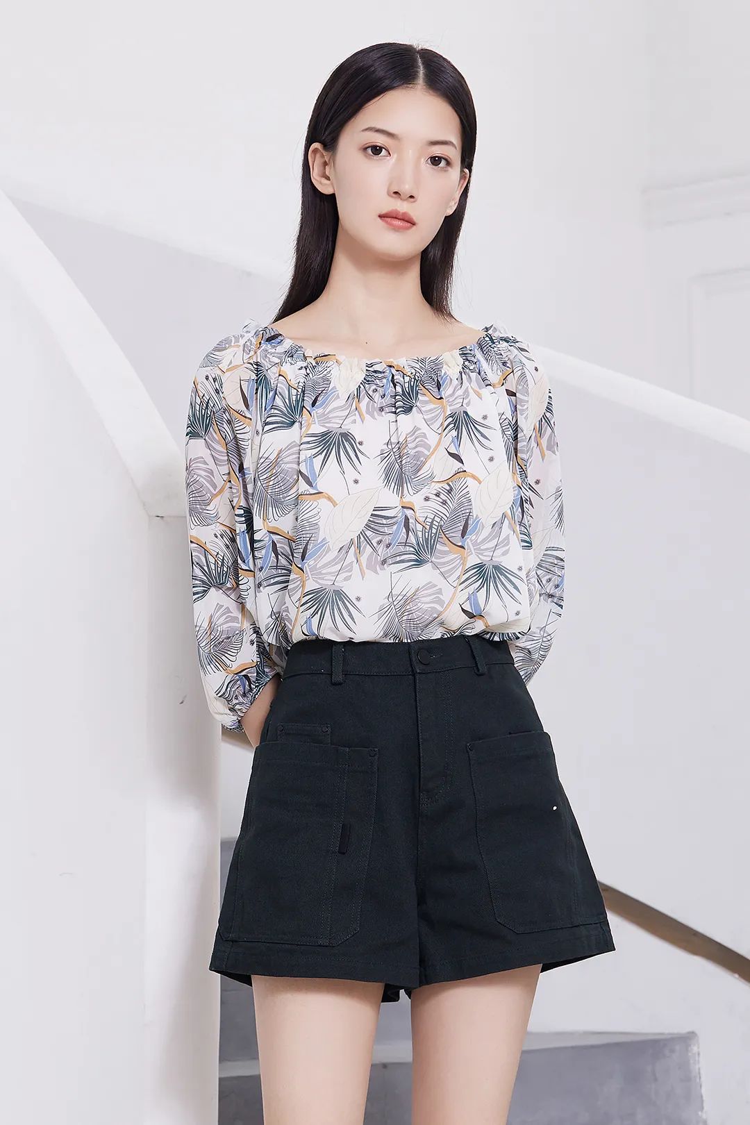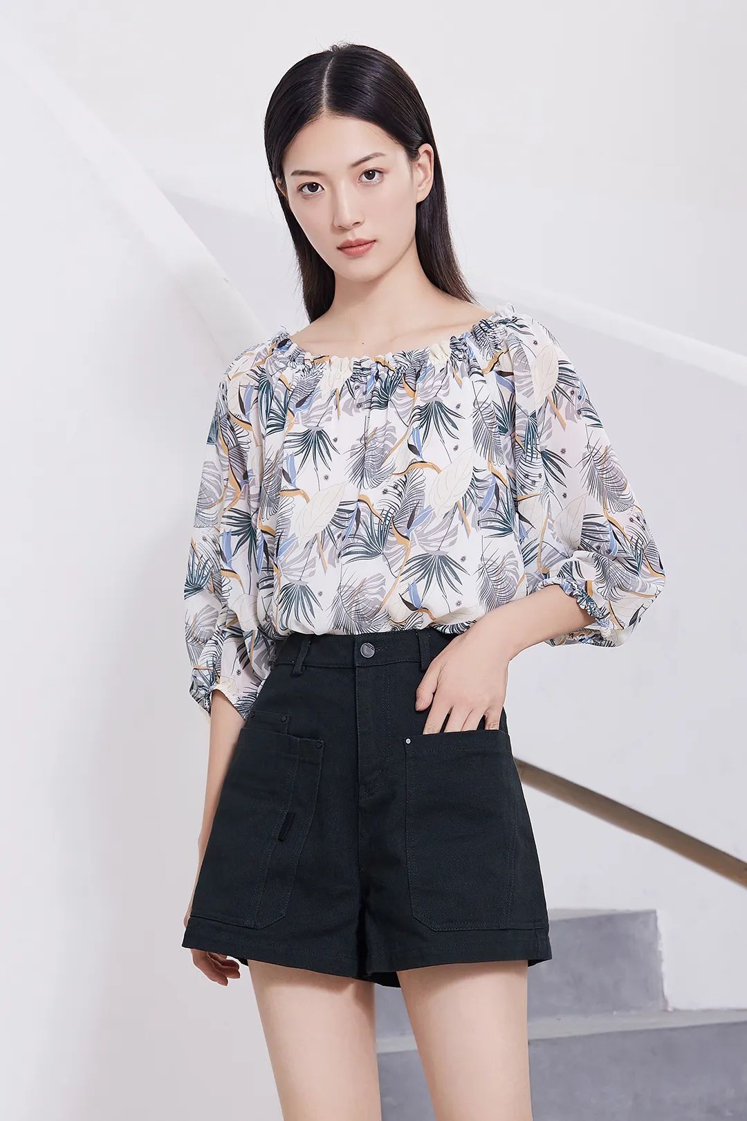 搭配青春靓丽的一字领衬衫
