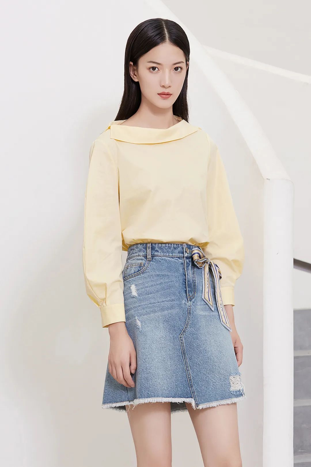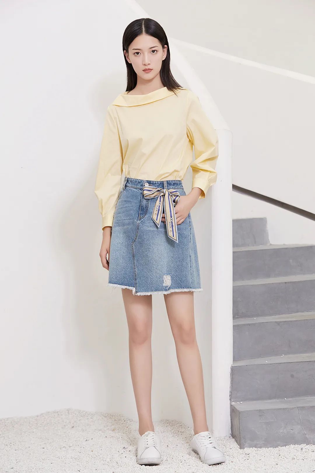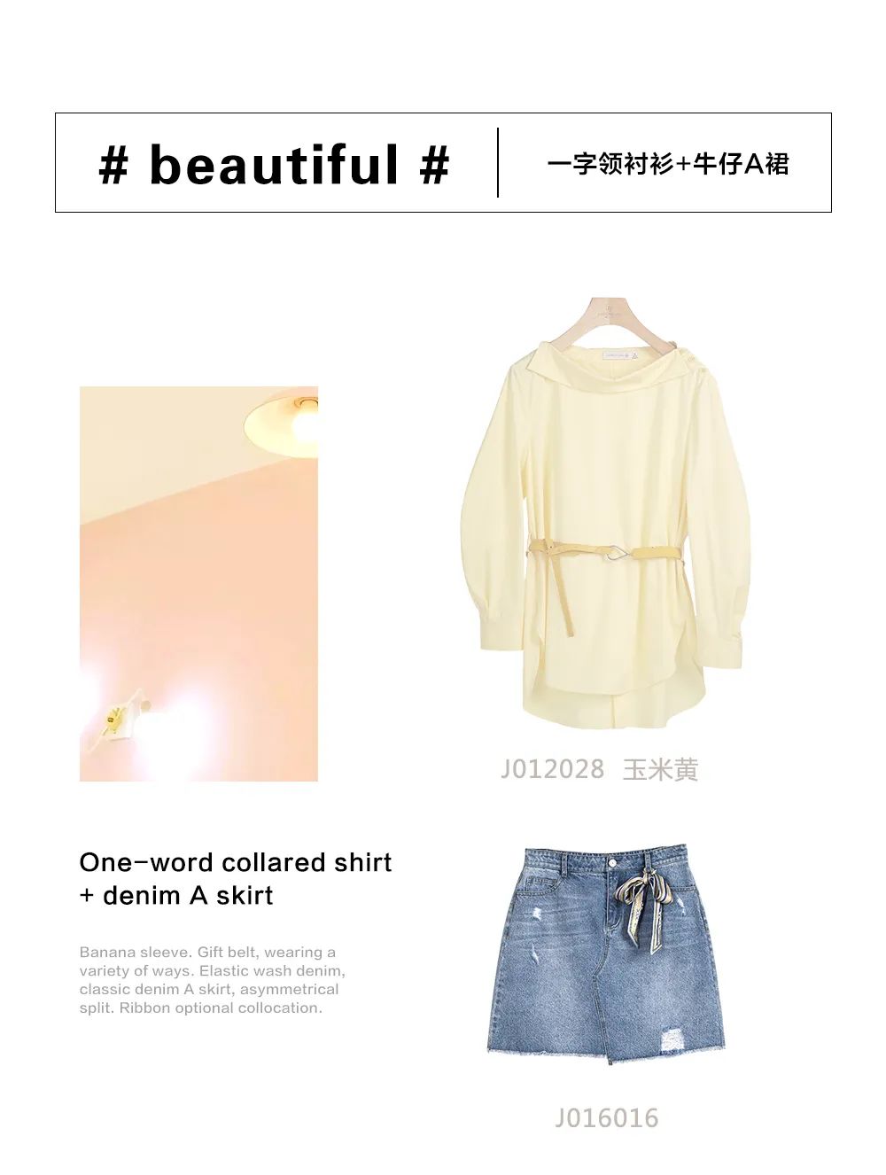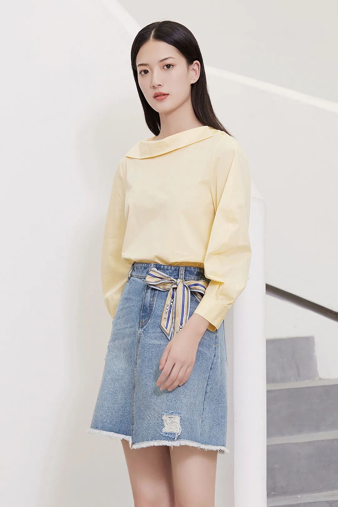 搭配青春靓丽的一字领衬衫