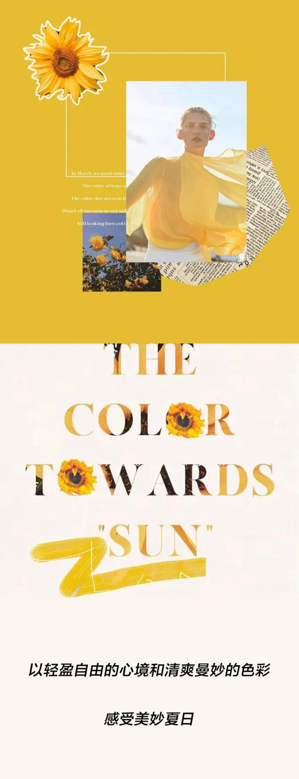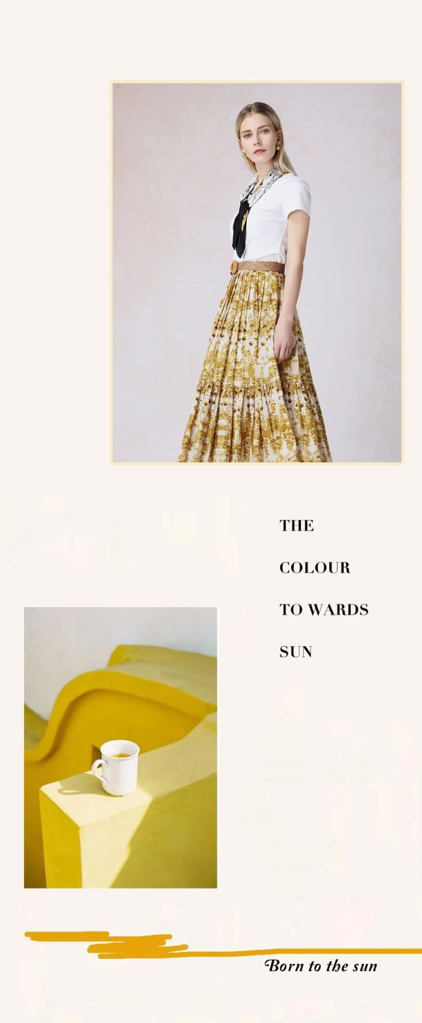 轻盈跃动的黄色,传递着云开雾散的明朗情绪,如光的色彩,醒目、有趣,充满正能量,当治愈的苍兰黄渗透进夏季的服装中,让生活和工作着装变得轻松愉悦。