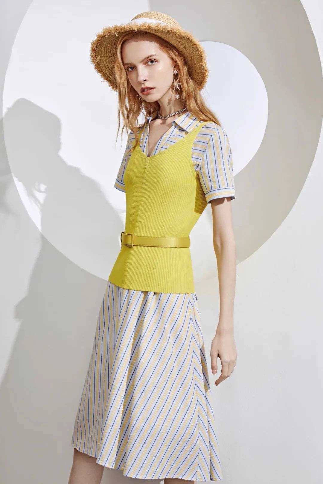 蓝色条纹与云雀黄组成***CP