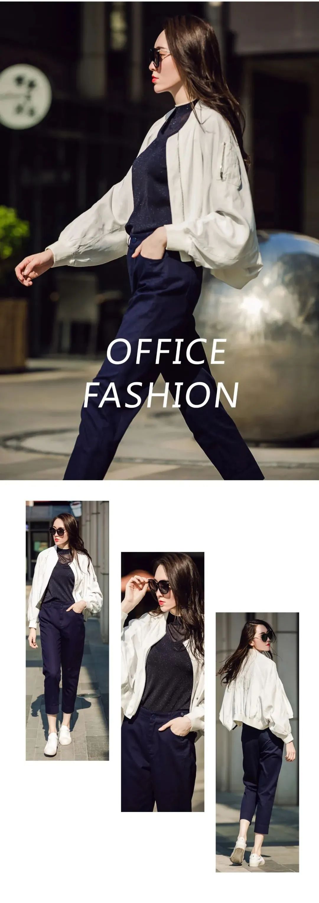 动感减龄的时尚夹克和藏青色哈伦裤相结合,