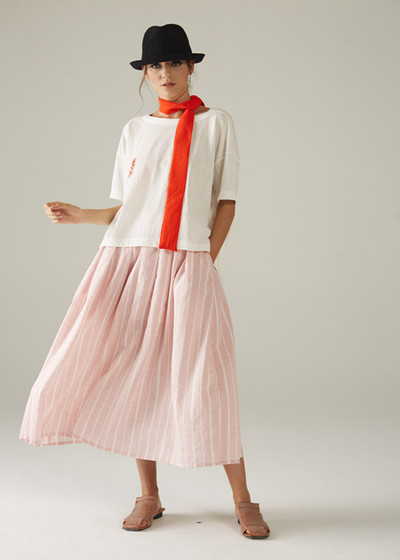 棉麻的面料舒适柔软,透气性强,棉麻材质的单品尤为适合夏天搭配。极尽温柔的杏色棉麻上衣+粉色半身裙,时减龄青春,充满浓浓的青春校园气息。