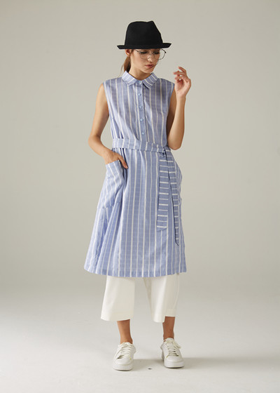 白色的小直筒休闲长裤,穿着舒适美丽,可很好地修饰出腿型的纤细迷人。上身的搭配长款条纹无袖衬衣,穿出层次感出来。如果是喜欢简洁的妹子们,换上舒适好穿的休闲单鞋,就可以很好的穿出简简单单的美。