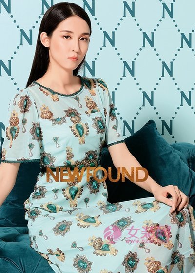 选择碧绿色位主题色,浅绿色的系列在显白效果显著的同时更加增加了优雅的女性魅力,深绿色小碎花的平铺设计打破了纯色的单调,喇叭袖的完美衔接不仅做到了在视觉上身材更加娇小,整体增加了性感的气息。