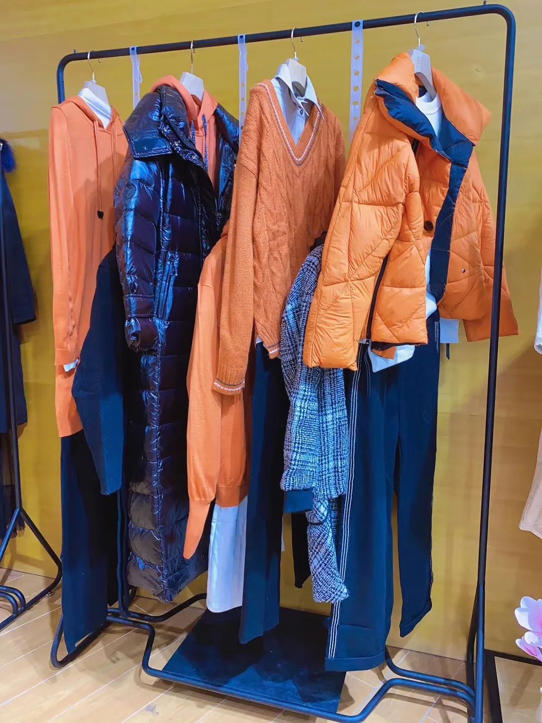 【款式比例】:羽绒服17.5%,双面妮10%,颗粒绒1.5%,大衣外套2%,连衣裙11%,套装2%,毛衣14%,卫衣6%,上衣12%,裤裙24%