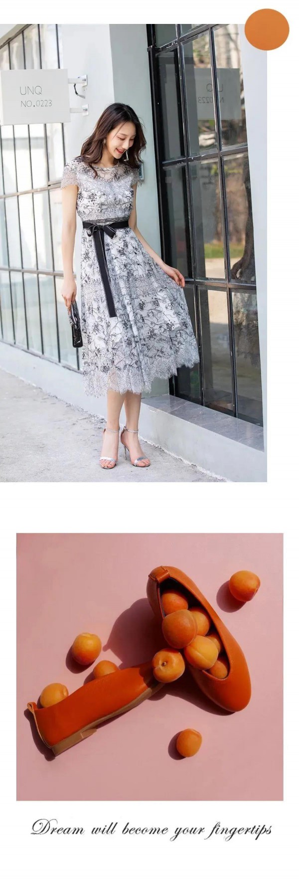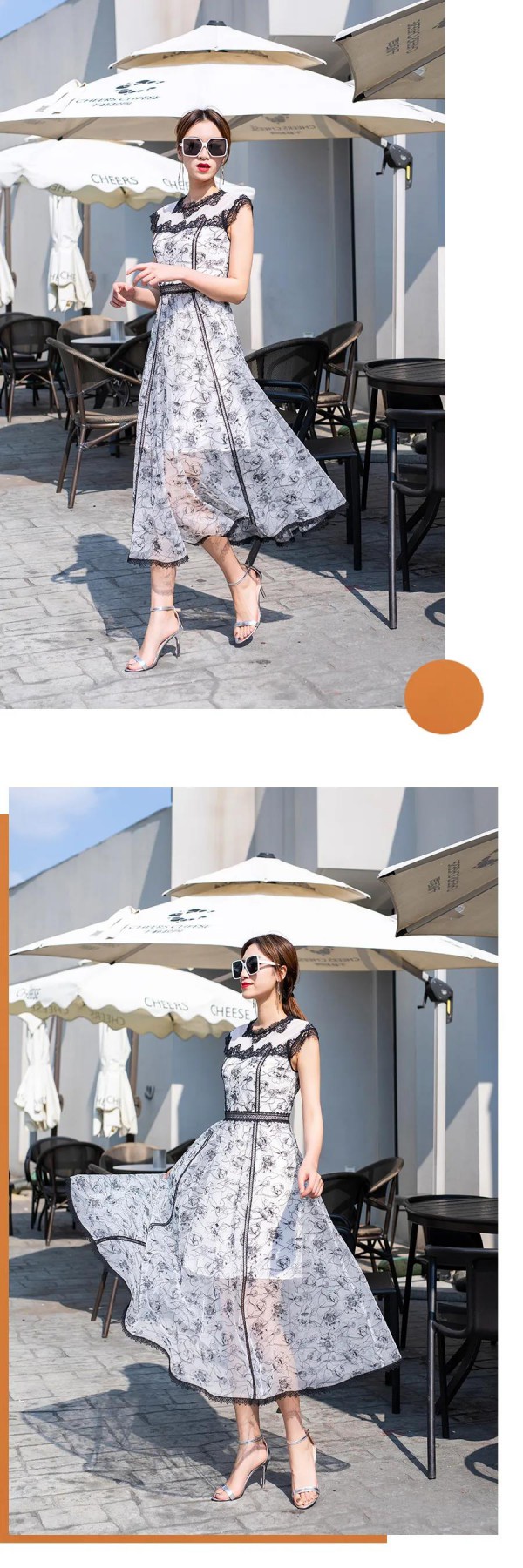 在匆忙的都市街头,华丽的裙身在阳光的映衬下洋溢着女性的活力与娇媚,散发着被宠爱的气息。蕾丝、印花都是巧妙的设计。