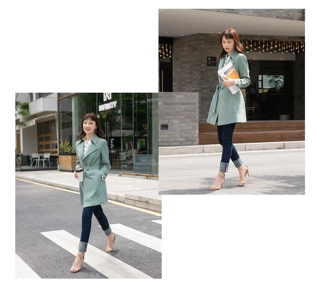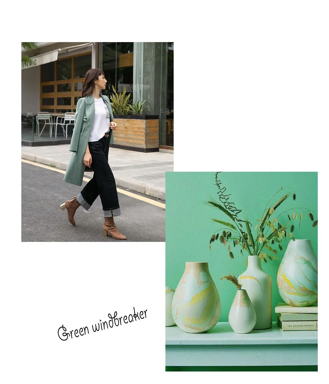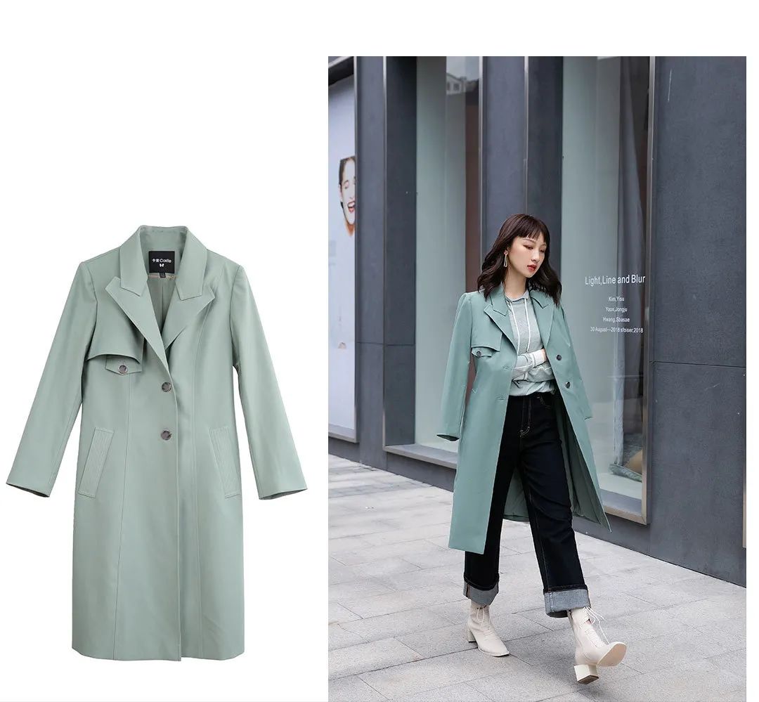 清新的绿色风衣外套,