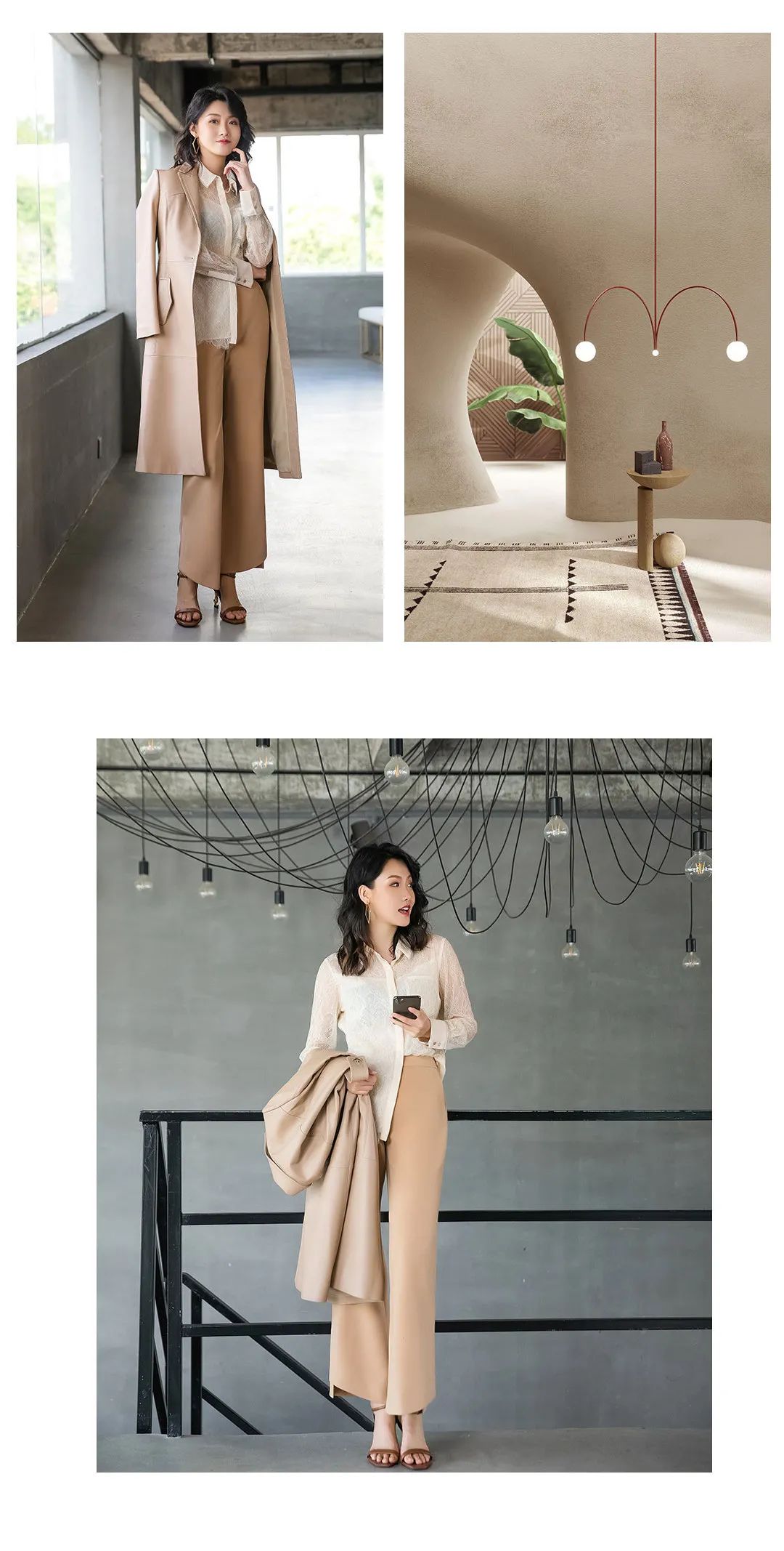 阔腿裤自带的修身效果,