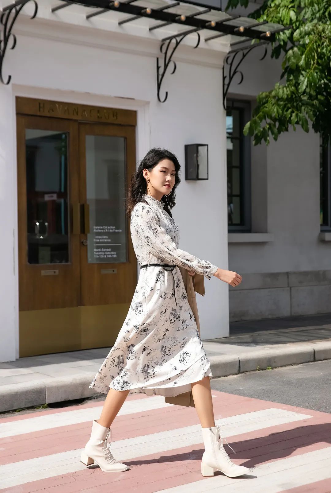 连衣裙作为内搭再搭配长款风衣,