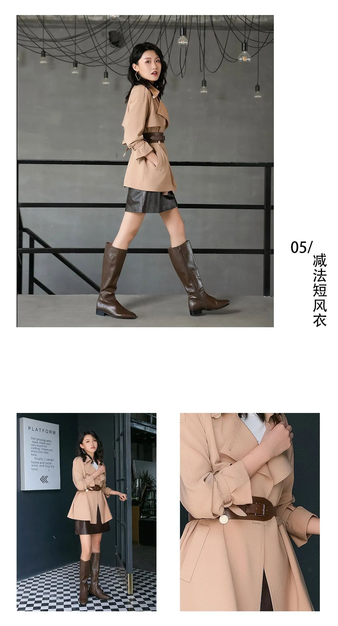 oversize弄掉的腰线由短风衣找回,