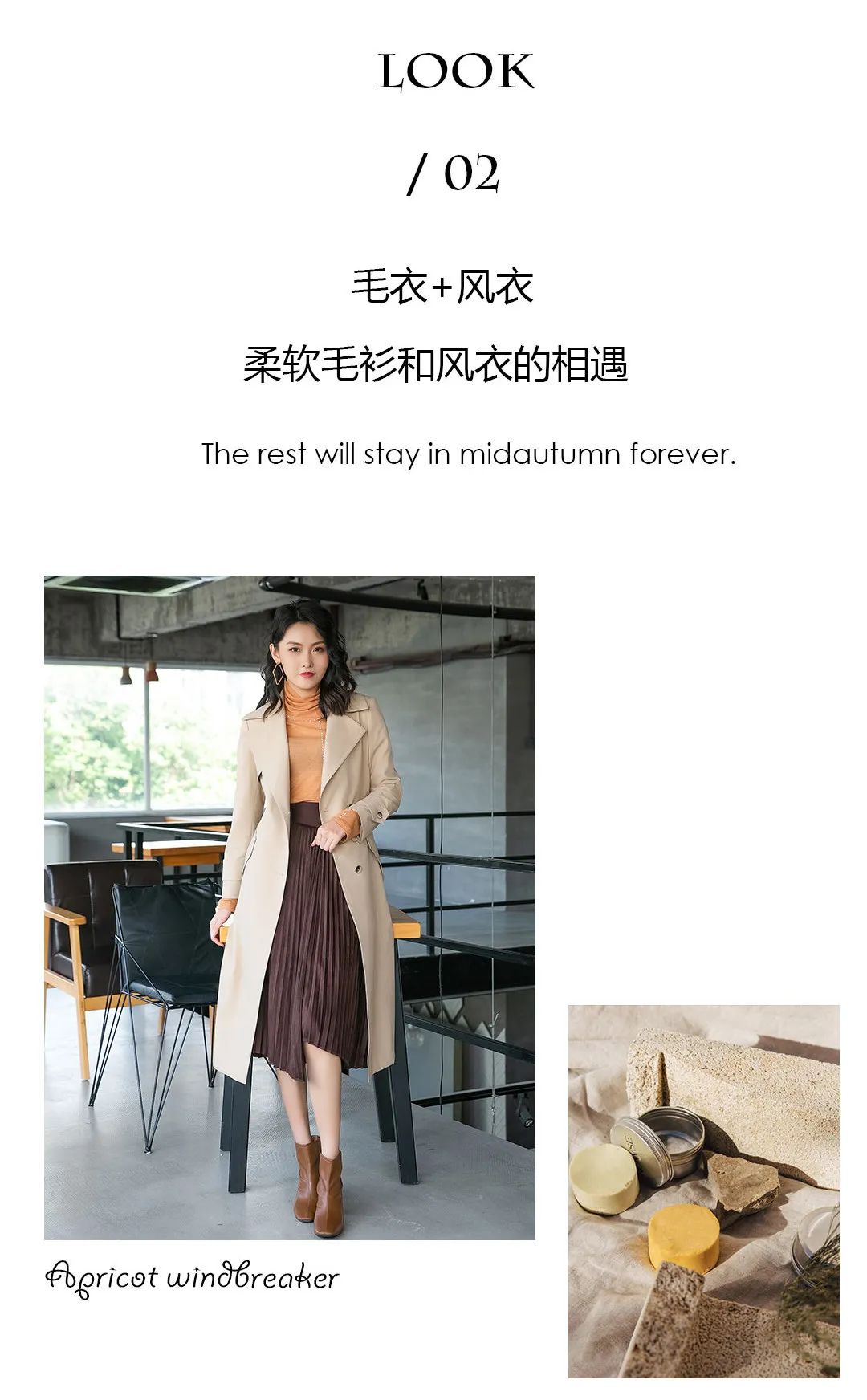 在秋天搭配银杏色的风衣,