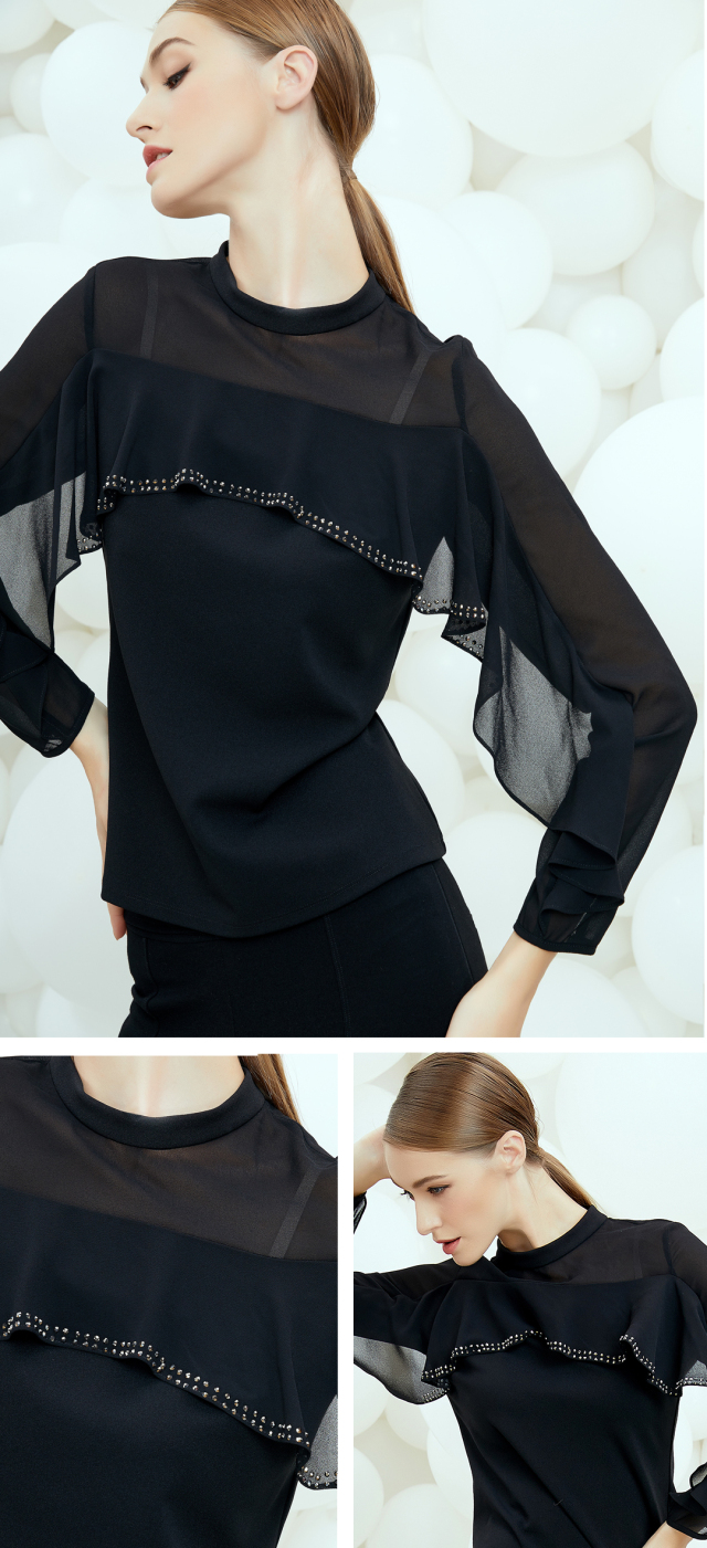 为简约的黑色增添女人味。