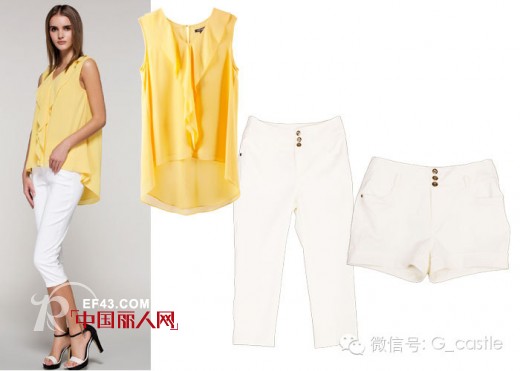 在明媚的季节,选择明色彩明亮的黄色单品,搭配纯净的白色,***是再合适不过。不对称的飘逸下摆,精致的荷叶边,搭配简洁修身的短裤或七分裤,轻松的夏日悠然而至。