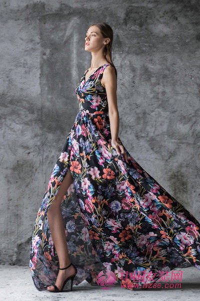 迷恋长裙带来的力量,就像一段奇妙的旅程,每个女人都向往留恋,性感吊带设计,时尚大方,宽大的开衩裙摆设计,凸显出服装的独特性,穿着较舒适宽松。