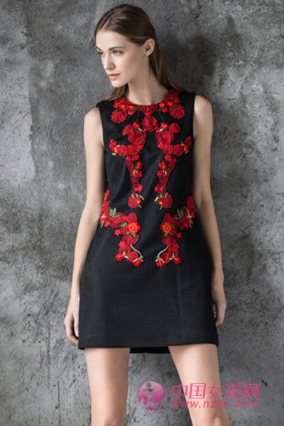 国人仿佛都对红有一种偏执的喜爱,赋予了红色各种美好意义,喜庆、庄重。红色的刺绣与黑色的搭配不至于过于张扬,简单大方的款式,立体的剪裁,优雅十足。