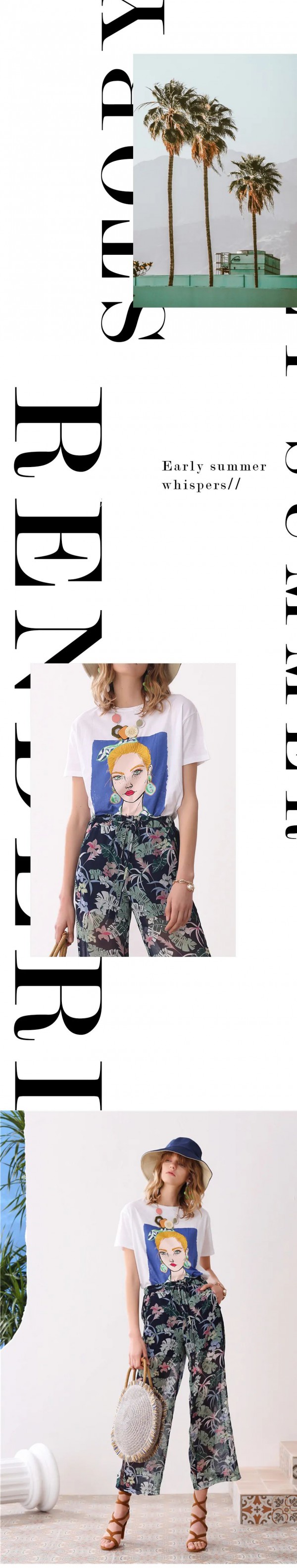 回归自然本色,也要率性洒脱,时尚插画少女,透露着活力的气息,与热带植物碰撞出不羁,感受宁静与活泼交集的协奏曲。