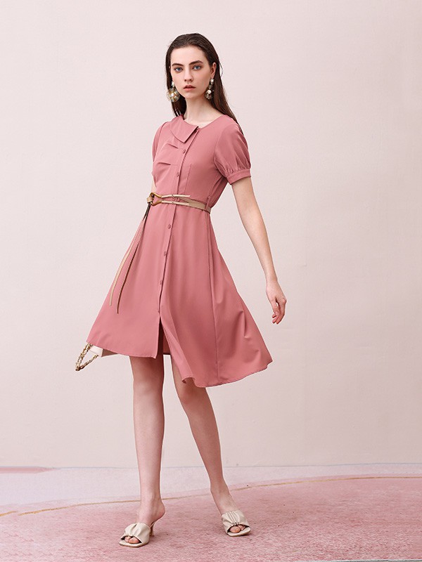 百图女装的这款连衣裙很是好看而且是很温柔的一款连衣裙。领口的设计很要感觉,腰间收腰的设计将自己的性感的腰线展现出来,纽扣的设计复古时髦,搭配一双低跟鞋,整体的造型温柔大方。