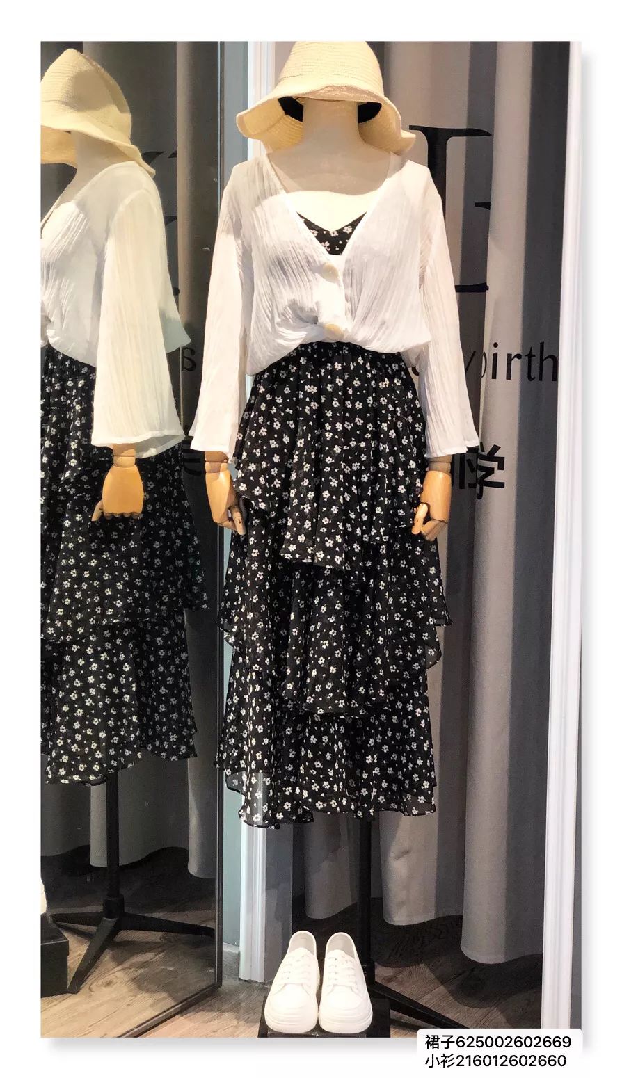 搭配拼接小黑裙,肩部的透视吸睛十足