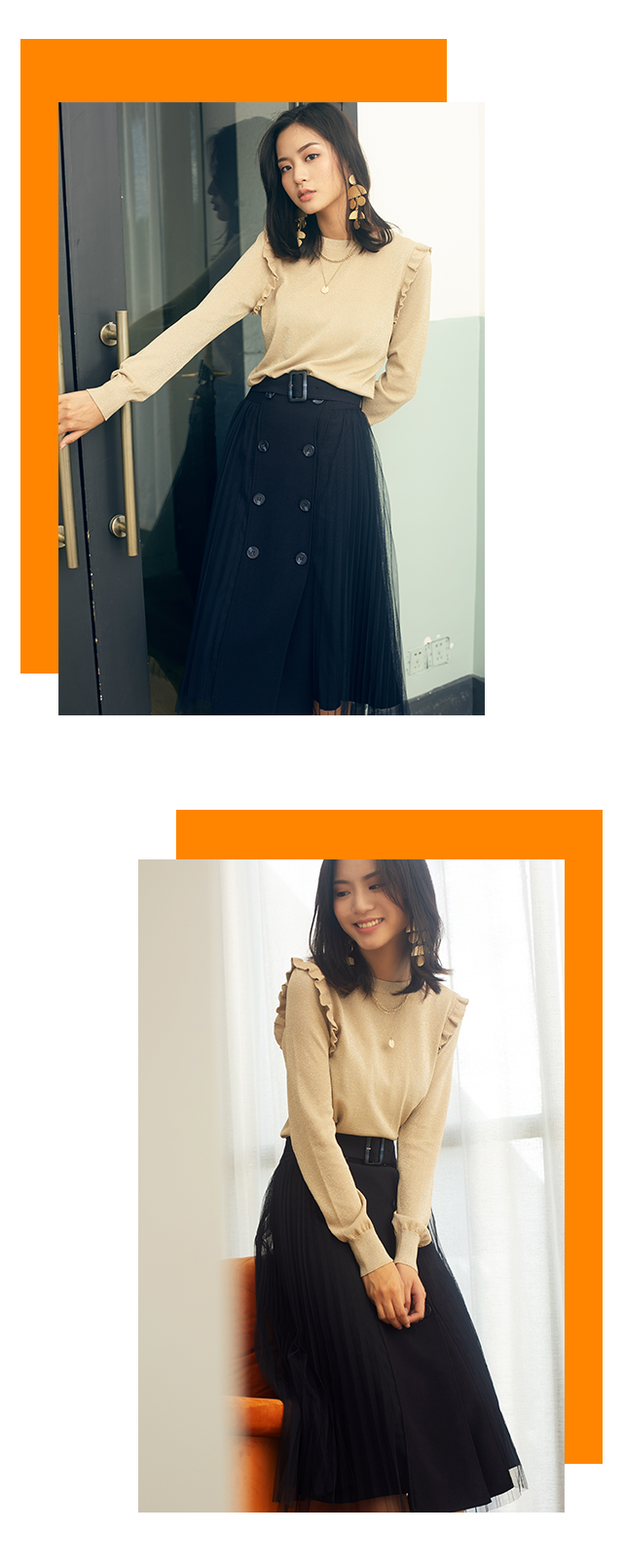 今天带给大家时尚又少女的毛衫穿搭