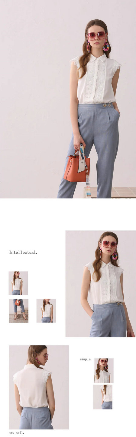 舒适的相处,其实很简单,白色蕾丝搭配时尚修身的萝卜裤,让生活的每一个角落都渗透恬淡宁静的美好。而我最想念的夏天却永远定格在了过去的回忆里。从此,不必仰望别人,你亦是风景。