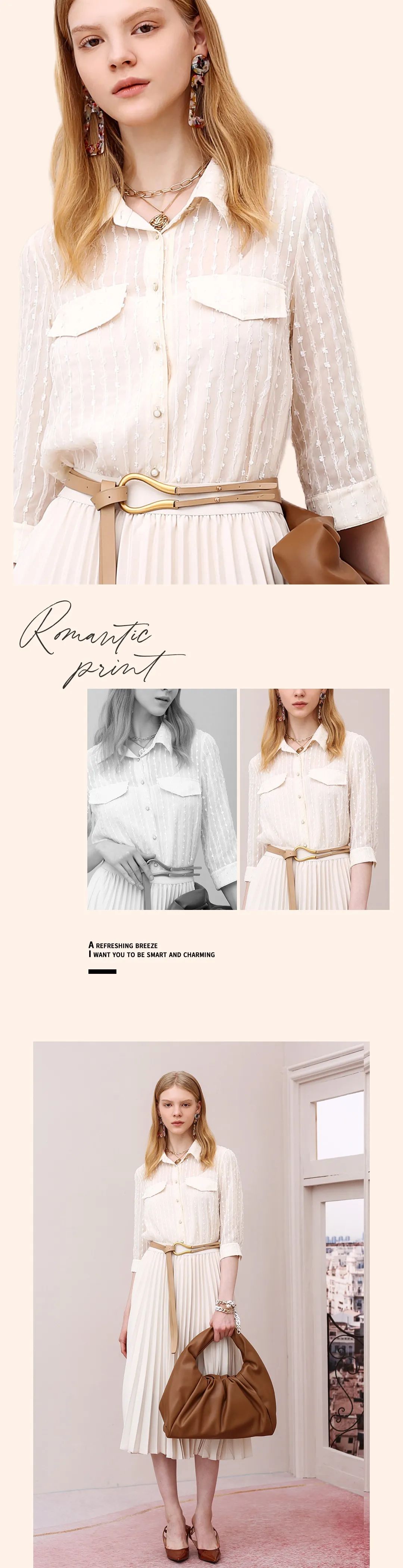 今天想用独特拼接亮点,吸引所有人的视线,办公室中干练的你,时刻保持自信高效的工作态度,简约不简单的衬衫,是爱.上工作生活的全部理由。