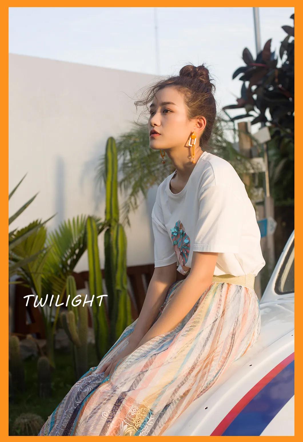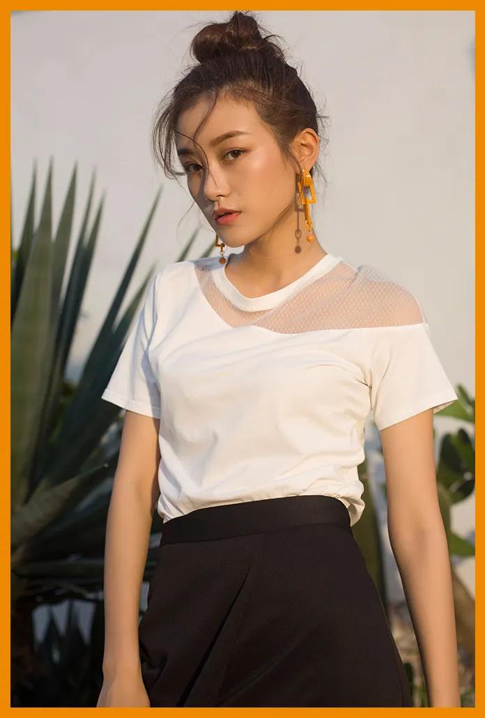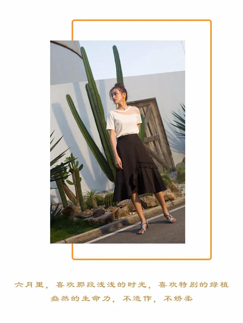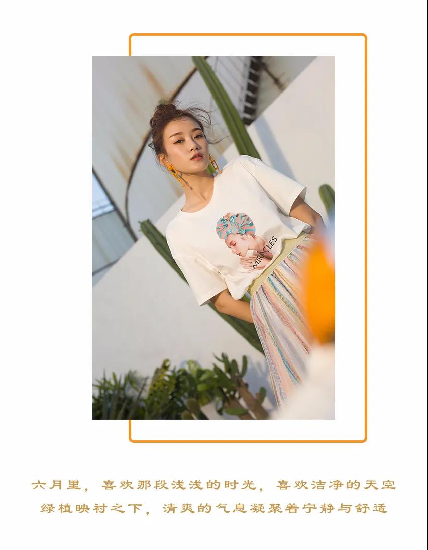 镂空的圆领T恤,不失优雅。微露香肩的小细节,碰撞出专属于夏日的清爽记忆,不对称的花瓣半裙,尽显夏日活力