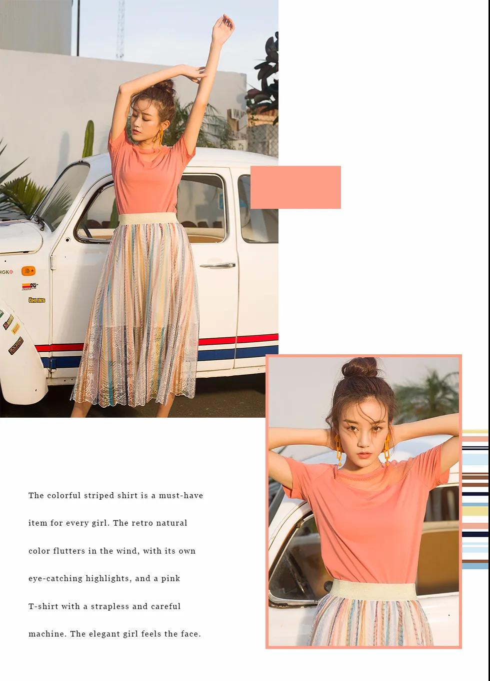 彩色条纹衬衫是每个女生的必备单品,复古的天然彩色在风中飘扬,自带吸睛亮点,搭配露肩小心机的粉系T恤,优雅少女感扑面而来。