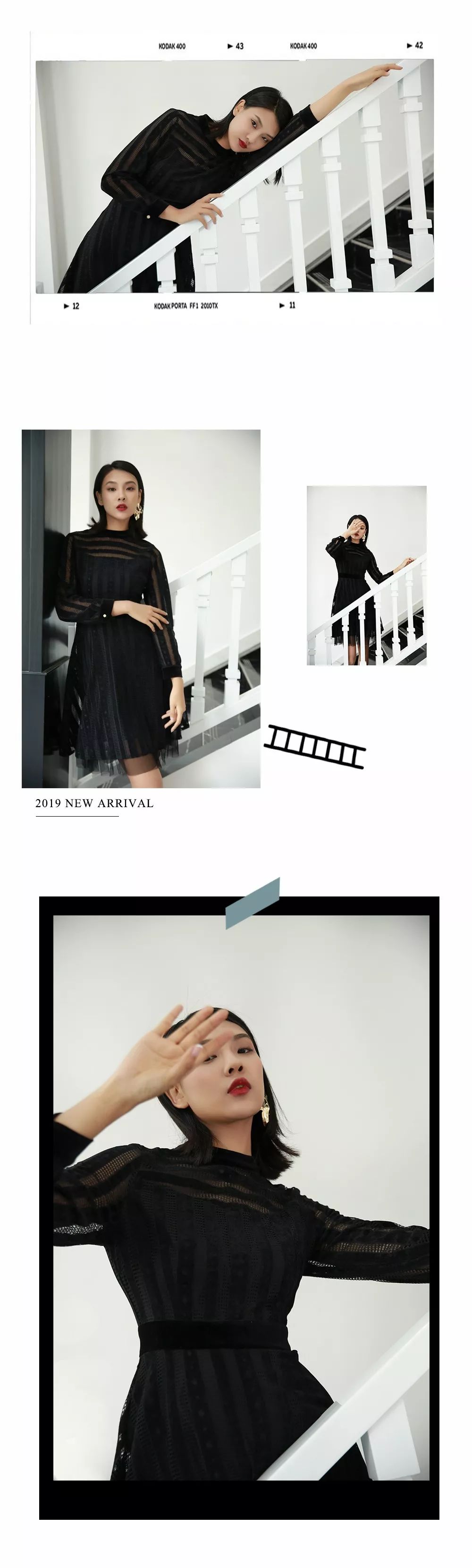 老佛爷Karl Lagerfeld曾说过:一件小黑裙永远不显过度打扮,也不致疏忽打扮,小黑裙在古今中外皆被赋予如此崇高的地位,甚至时尚圈为 Little Black Dress创造了属于它的简称“LBD”! 因为它的多面,将一切美好的词语都灌注于其中。下面这面肩部的波点透视,带有一丝性感的妩媚,收腰显瘦的版型在洗水绒材质下更加舒适垂坠。