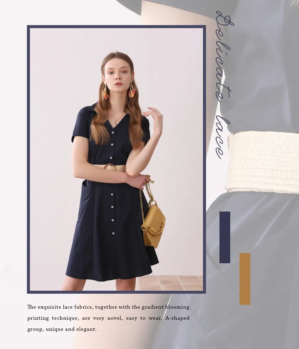 精致蕾丝面料,加上渐变晕染的印花手法,非常的新颖,易穿搭的A摆裙型,独特且优雅。搭配百搭的艺术图案T恤,再拿上一顶遮阳的草帽,最适合海边不过了。