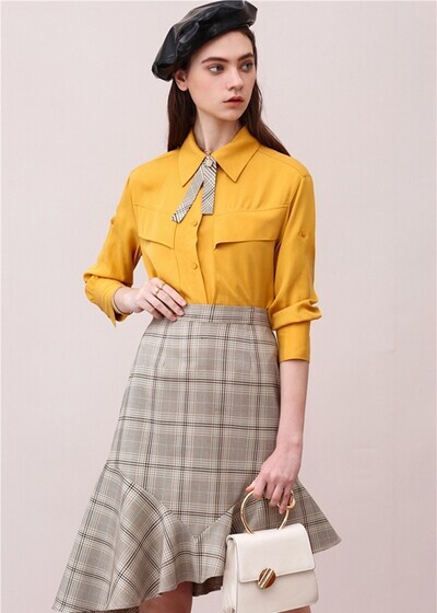 格纹永远是酷女孩的经典元素,不仅充满浓厚的复古感,还显得人利落有型。如果觉得一身格纹过于沉闷,选择荷叶边的半身裙就是满满的法式风情,很适合初秋刚刚好的温度。