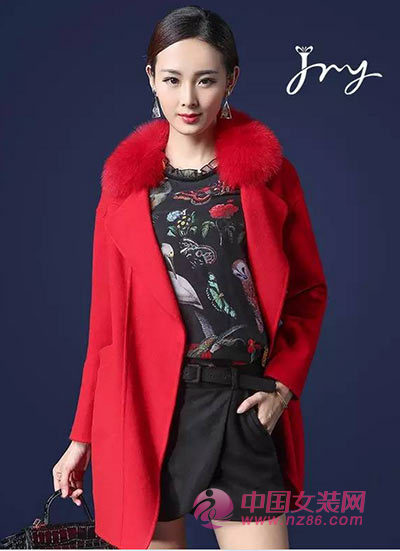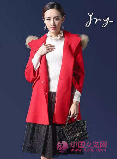 红色的廓形呢料大衣,连帽大A摆设计,貉子毛领点缀,加上宽松的九分袖,给人大一码的慵懒感,随性中又多了几分大气。