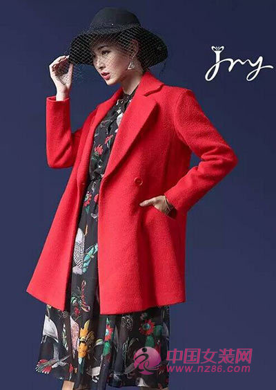 大红的呢大衣充满了新年的热情与喜庆气息,经典简约的设计看起来落落大方,搭配印花的上衣与短裙,更具女性魅力。