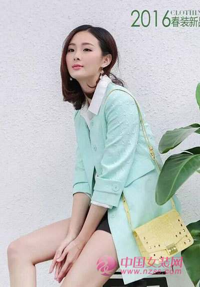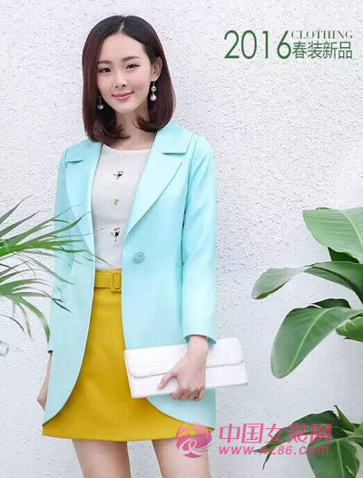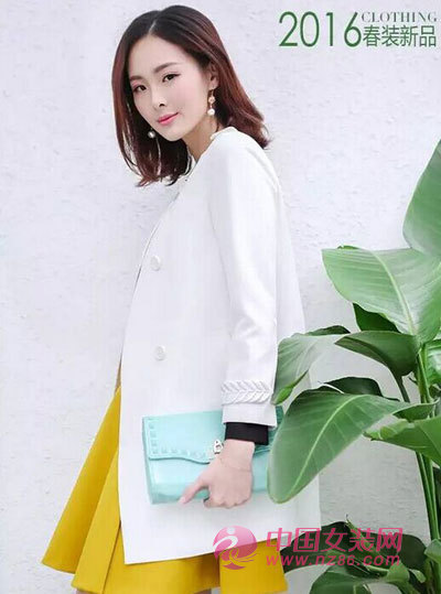 白色圆领的简约型外套有着春日间小清新的气息,姜黄色短裙更是萌气无边,水绿色手拿包为整身LOOK的色彩更添层次感,青春气息扑面而来,佳人们,再不粉嫩我们就老啦!