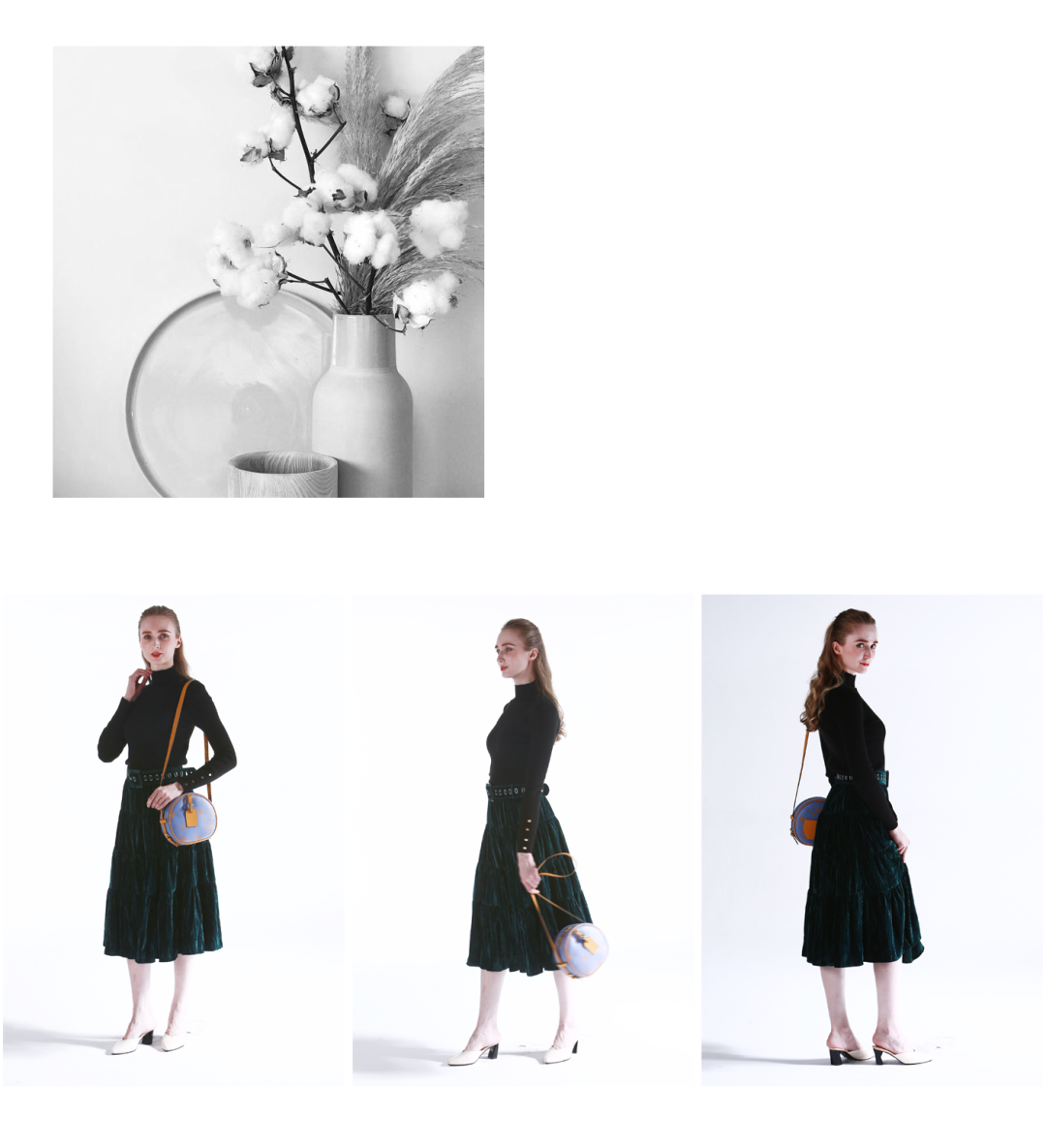 柔美身形随高腰线脱颖而出,垂坠丝绒自带高贵气息,温柔且高雅,犹如夜空闪耀的星,让人挪不开眼。