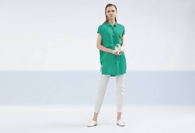 绿色宽松衬衫,复古印花H版包容性很好,更好遮挡你腰间的肉肉,绿色夏季给人清爽的感觉是你夏季出去游玩必选衣服,搭配白色裤子简约不简单。