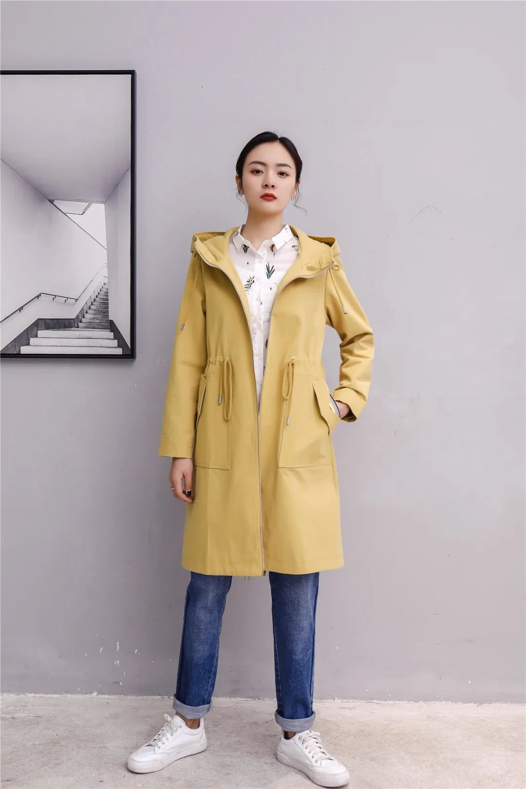 腰部抽绳风衣外套收放自如