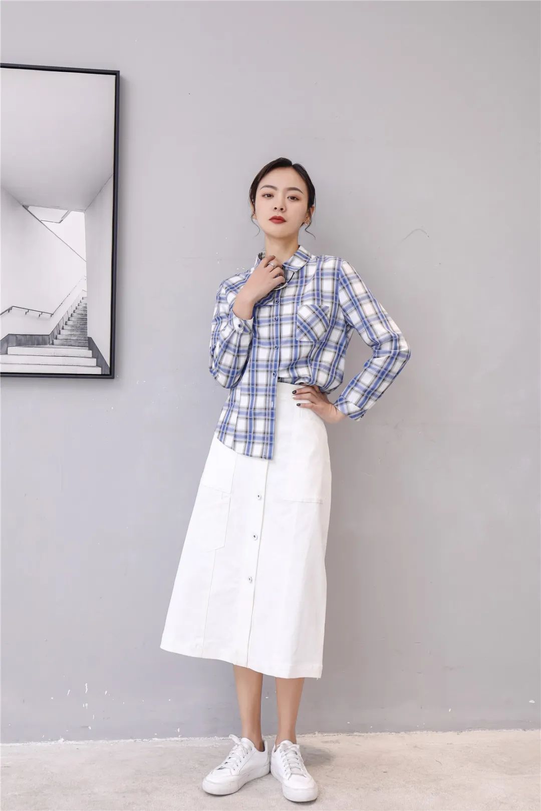 新款格子短袖衬衫为夏天的穿搭